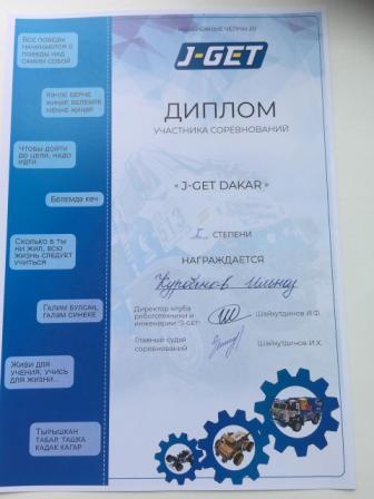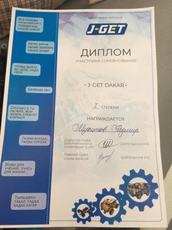 1 место на республиканских соревнованиях "J-GET DAKAR" (Ахмадиев Д.)