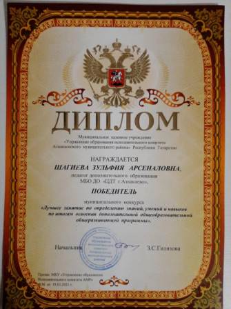 Победитель муниципального конкурса "Лушее занятие" (Шагиева З.А.)