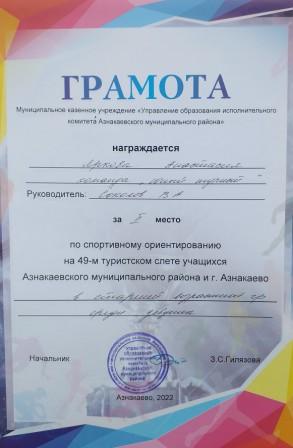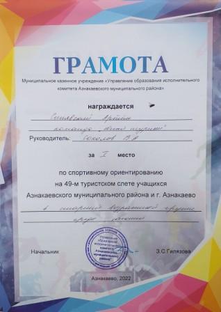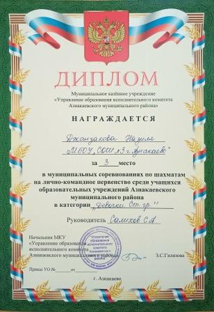 1 место в муниципальном турнире по шахматам им. Ф.М. Латыпова (Джанзакова И., Салихов С.А.)
