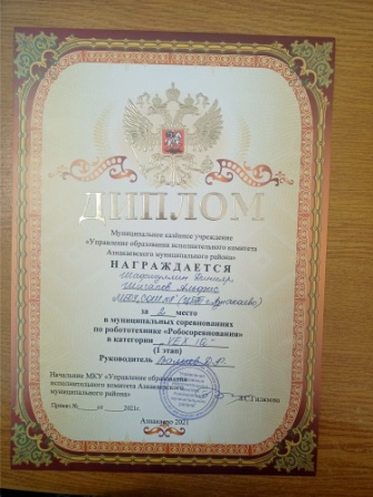 2 место в муниципальных соревнованиях по робототехнике "Робосоревнования" (Исламов А., Валиев Д.Р.)