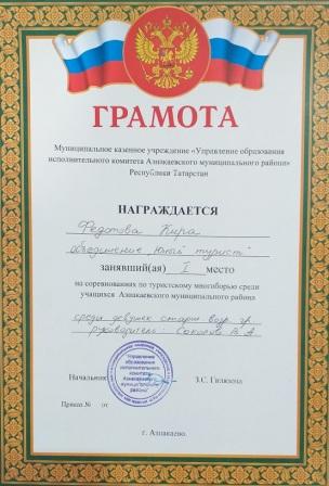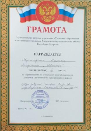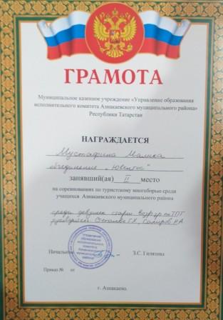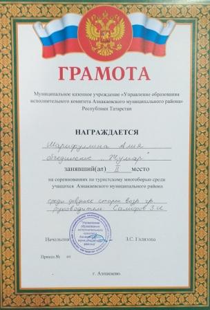 2 место в соревнованиях по туристскому многоборью (Шарифуллина А., Салифов З.И.)