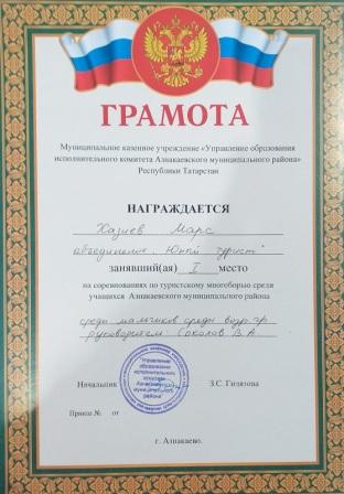 3 место в соревнованиях по туристскому многоборью (Каримов Э., Салифов З.И.)
