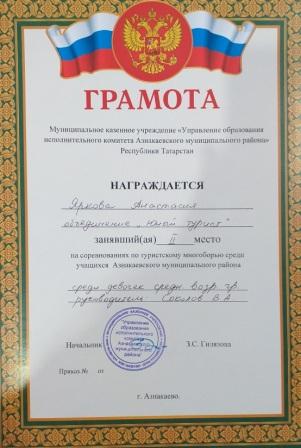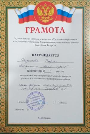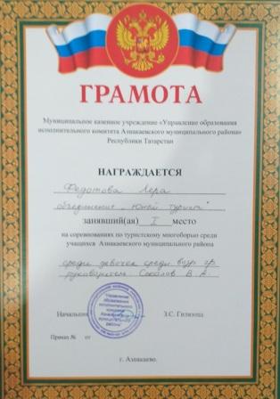 3 место в соревнованиях по туристскому многоборью (Талипова С., Степанова Г.Х., Салифов Р.А.)