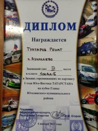 3 место в Республканских соревнованиях по картингу (1 этап, Туктаров Р., Зиганшин Р.С.)