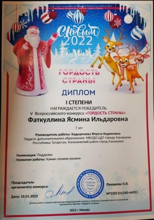 1 место во Всероссийском конкурсе "Гордость страны" (Фаткуллина Я.)