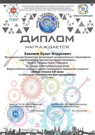 1 место во Всероссийском конкрсе "Гордость страны" (Валеев И., Кадырмаева Ф.К.)