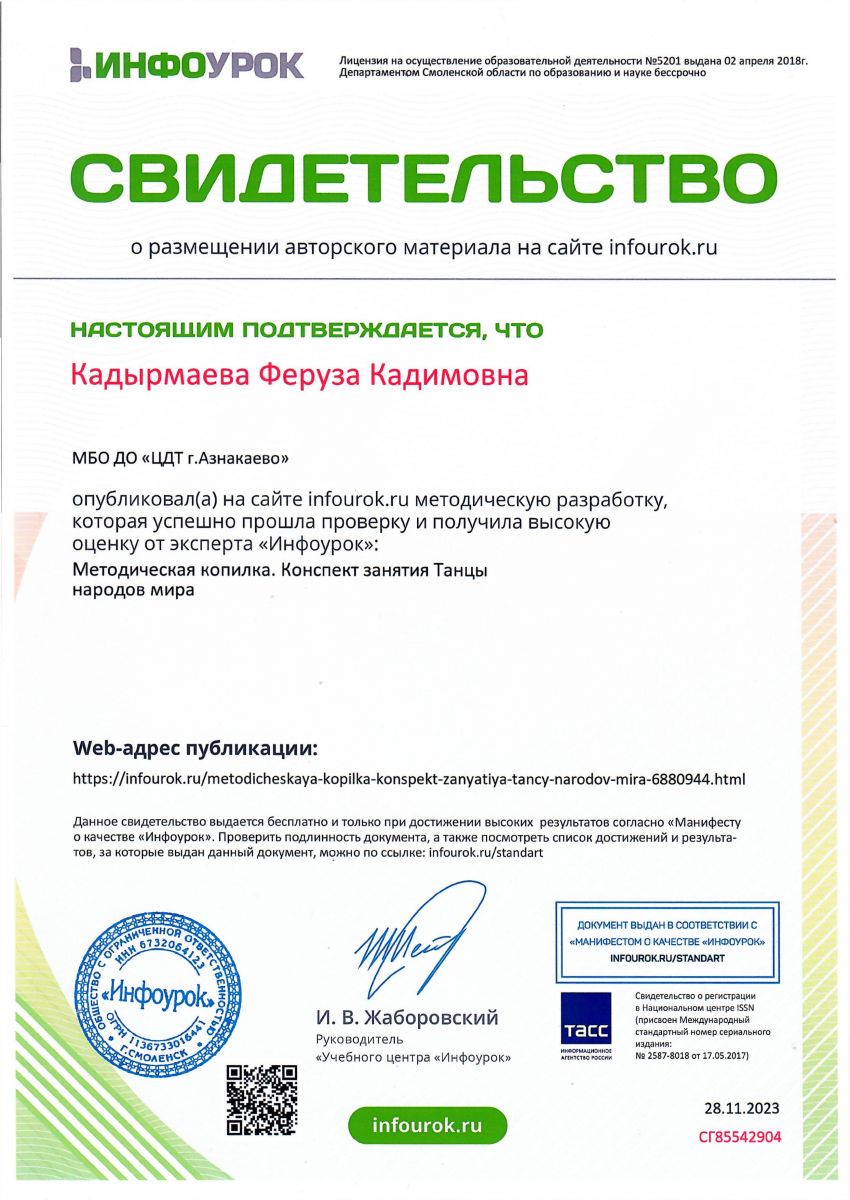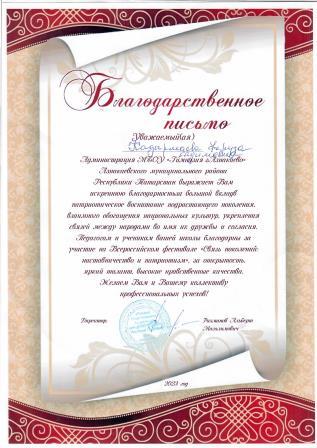За отличное судейство Республиканских соревнований по робототехнике "Робобитва" (Хакимова Н.З.)