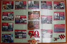 Согласно плану мероприятий к 70-летию Победы, педагоги и воспитанники ЦДТ "Развитие" оформили стенд, отражающий историю Великой Отечественной войны. Красочное оформление стенда позволяет достоверно передать информацию о тех страшных днях, которые пережили наши ветераны, труженики тыла и те, кто не вернулись домой.