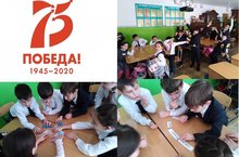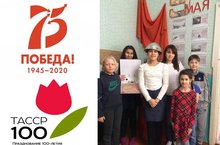 "Остров сокровищ" берләшмәсендә педагог Т.О.Залялова Бөек Ватан сугышында җиңүнең 75 еллыгына багышланган әңгәмә үткәрде. Фото Җиңү стенды янында эшләнгән, анда шул куркыныч сугыш геройлары, ветераннары һәм балалары турында мәгълүмат тупланган.