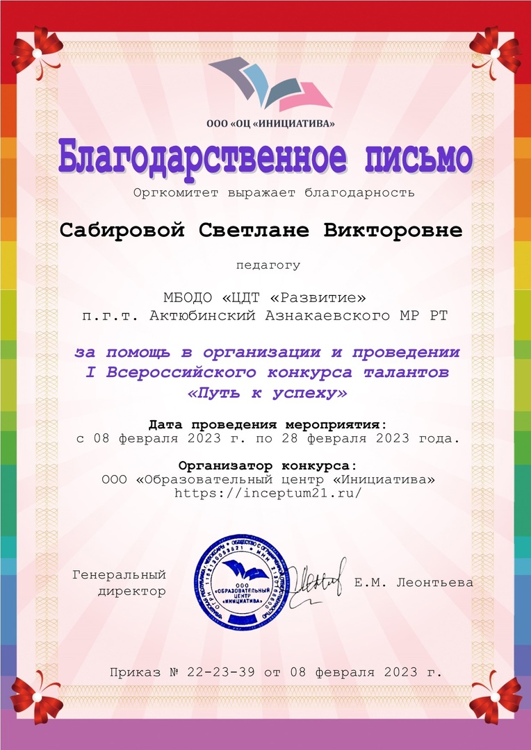 | Короткое название: | МБО ДО "ЦДТ "Развитие" п.г.т.Актюбинский Азнакаевского муниципального района РТ |