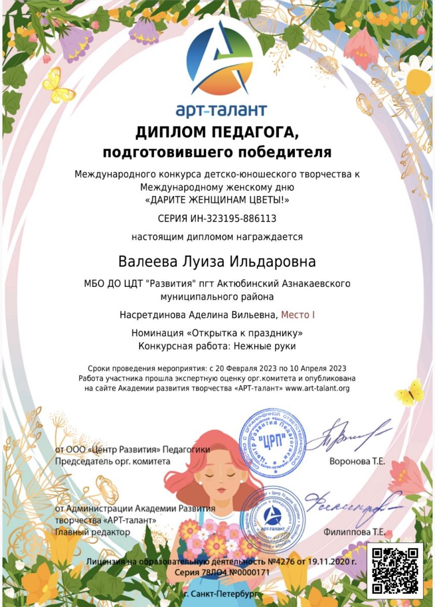 Муниципальная бюджетная организация дополнительного образования «Центр детского творчества «Развитие» п.г.т. Актюбинский Азнакаевского муниципального района Республики Татарстан