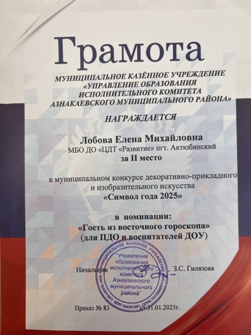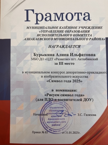 Муниципальная бюджетная организация дополнительного образования «Центр детского творчества «Развитие» п.г.т. Актюбинский Азнакаевского муниципального района Республики Татарстан