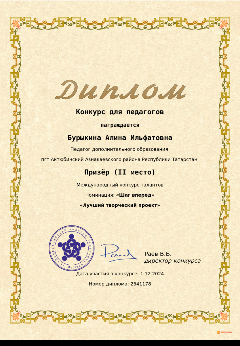 Муниципальная бюджетная организация дополнительного образования «Центр детского творчества «Развитие» п.г.т. Актюбинский Азнакаевского муниципального района Республики Татарстан
