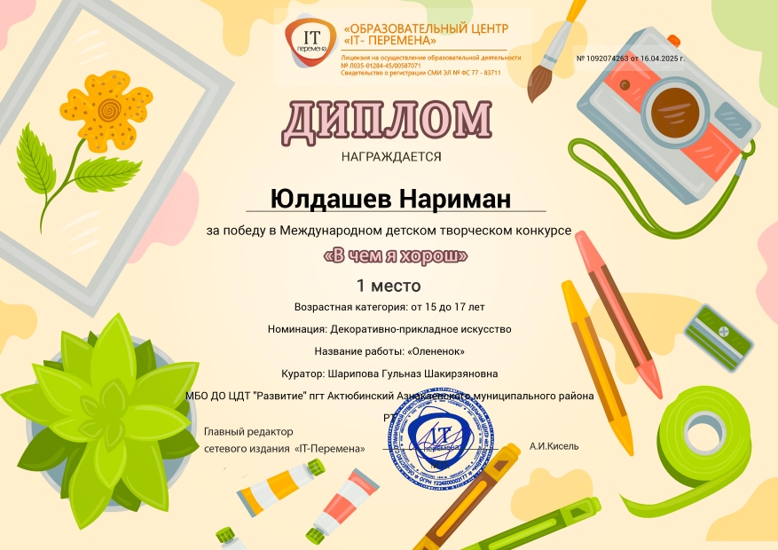 Муниципальная бюджетная организация дополнительного образования «Центр детского творчества «Развитие» п.г.т. Актюбинский Азнакаевского муниципального района Республики Татарстан