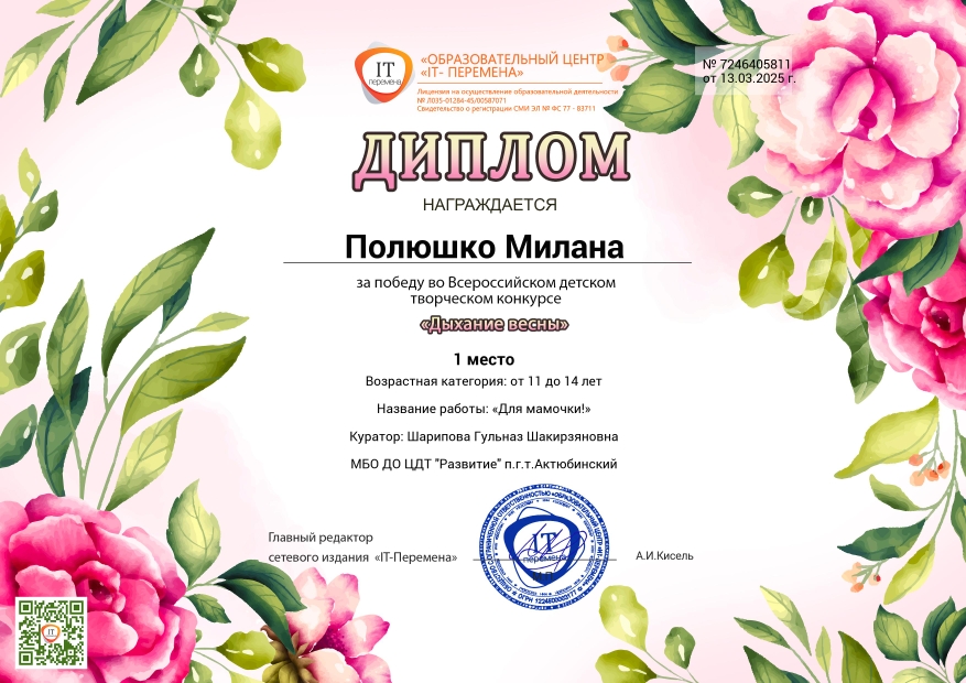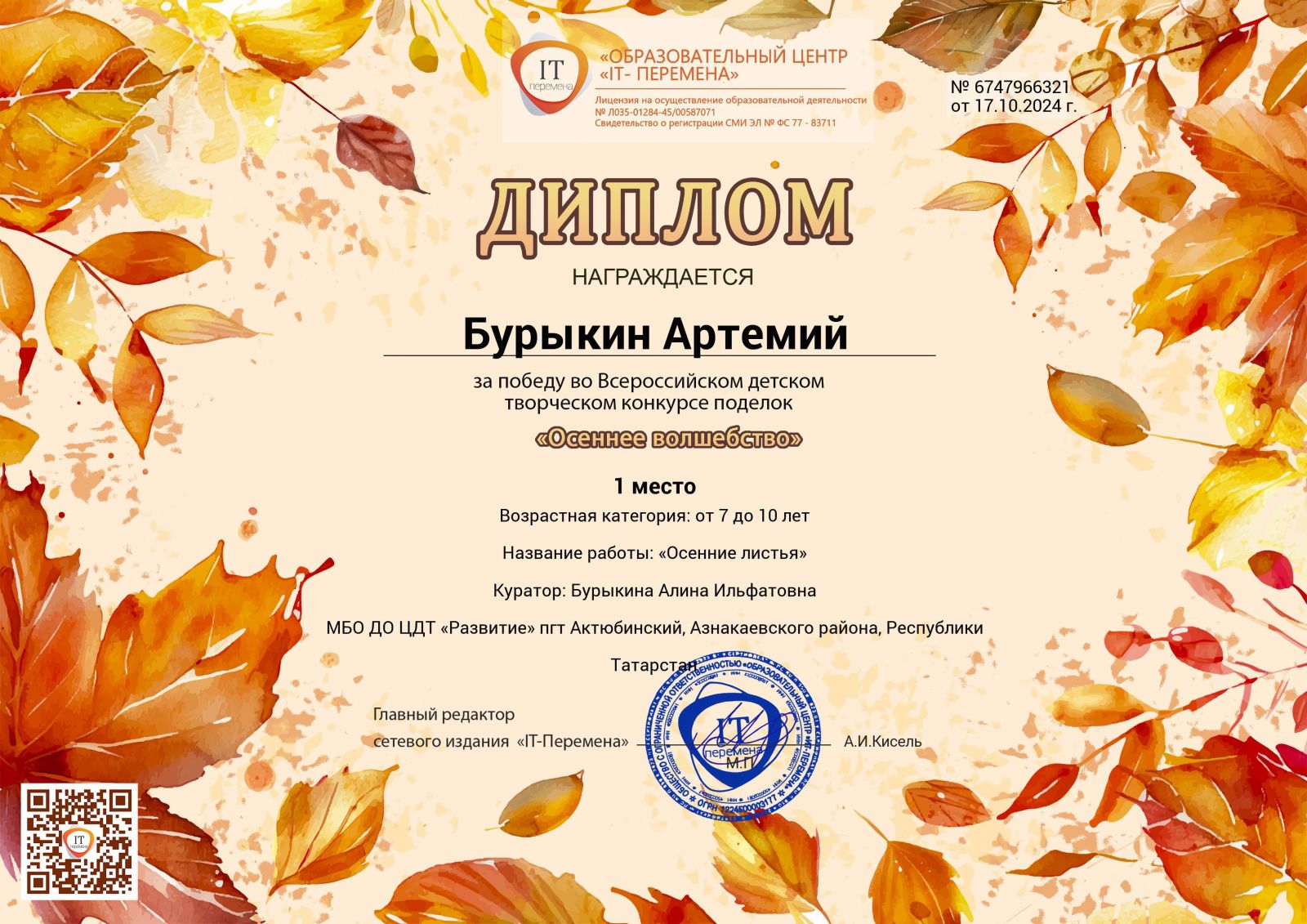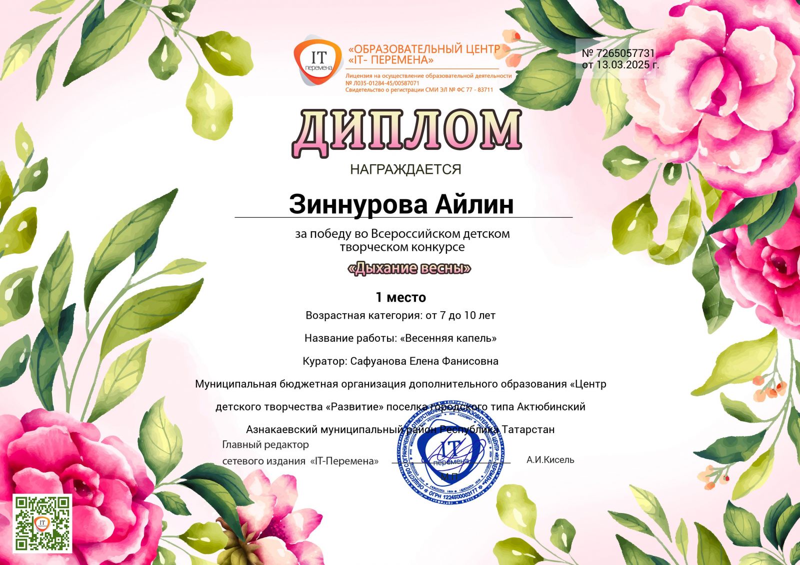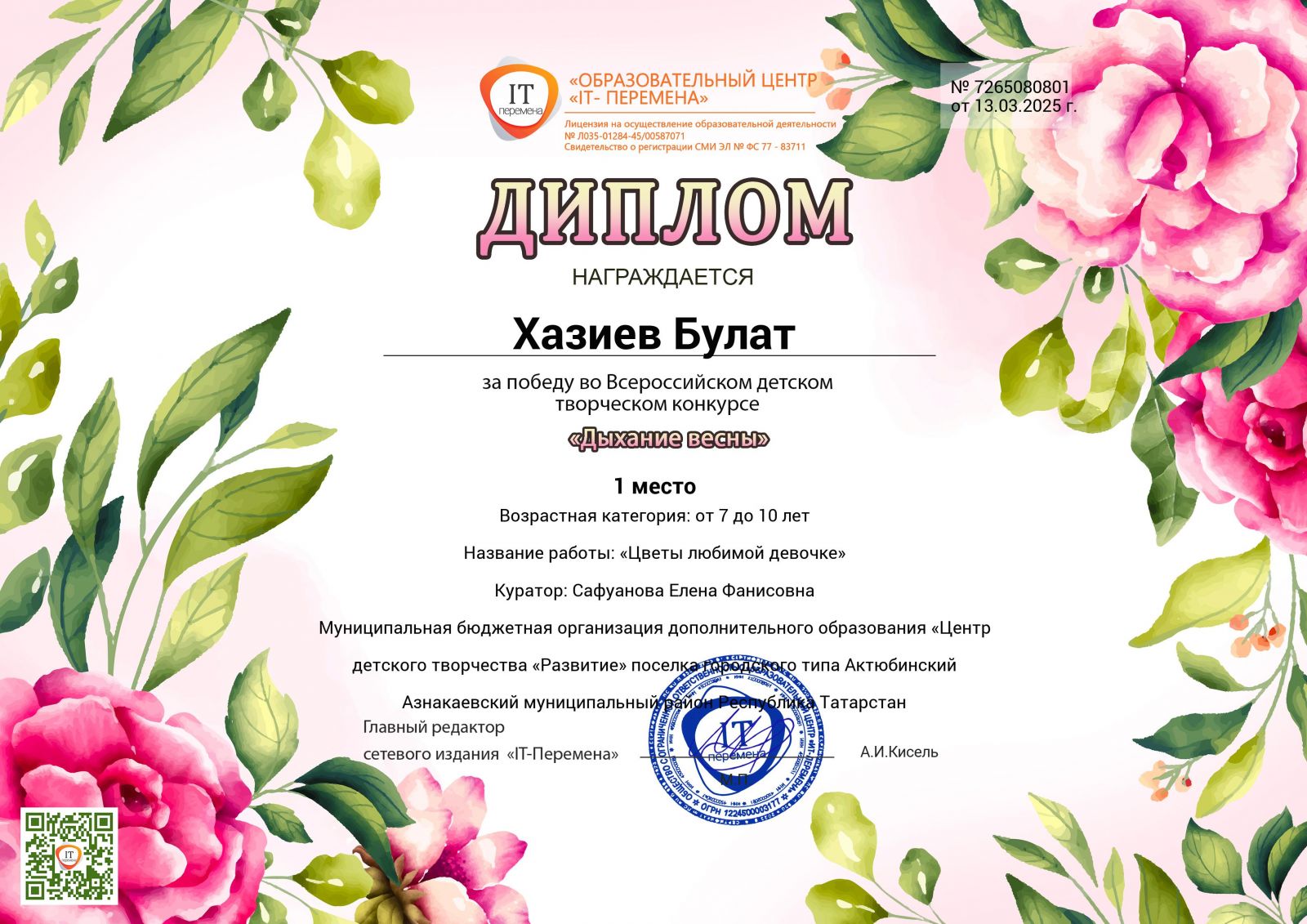 Муниципальная бюджетная организация дополнительного образования «Центр детского творчества «Развитие» п.г.т. Актюбинский Азнакаевского муниципального района Республики Татарстан