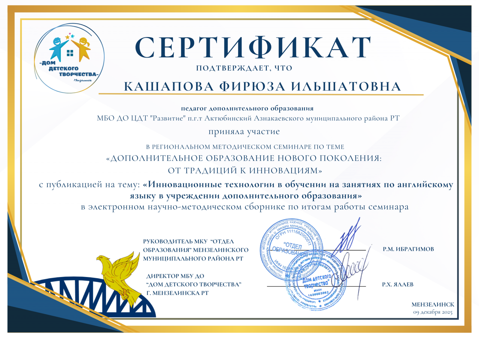 Короткое название: МБО ДО "ЦДТ "Развитие" п.г.т.Актюбинский Азнакаевского муниципального района РТ