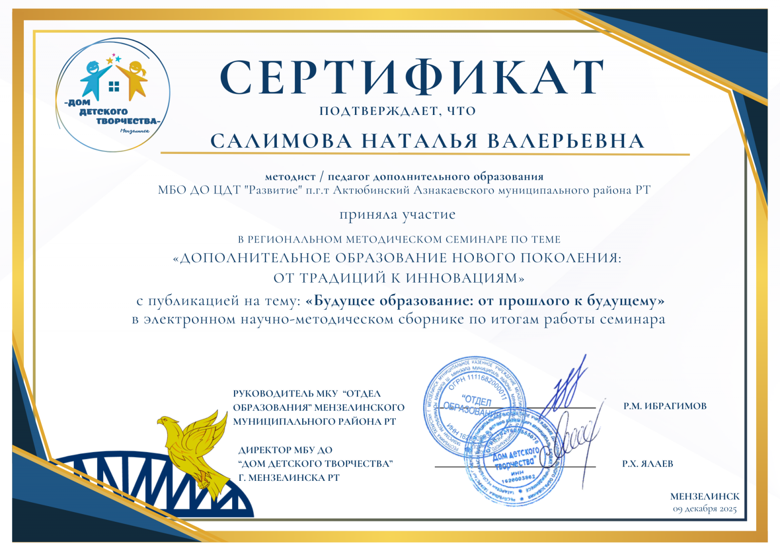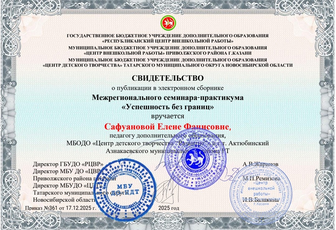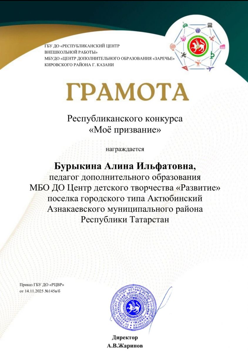Муниципальная бюджетная организация дополнительного образования «Центр детского творчества «Развитие» п.г.т. Актюбинский Азнакаевского муниципального района Республики Татарстан