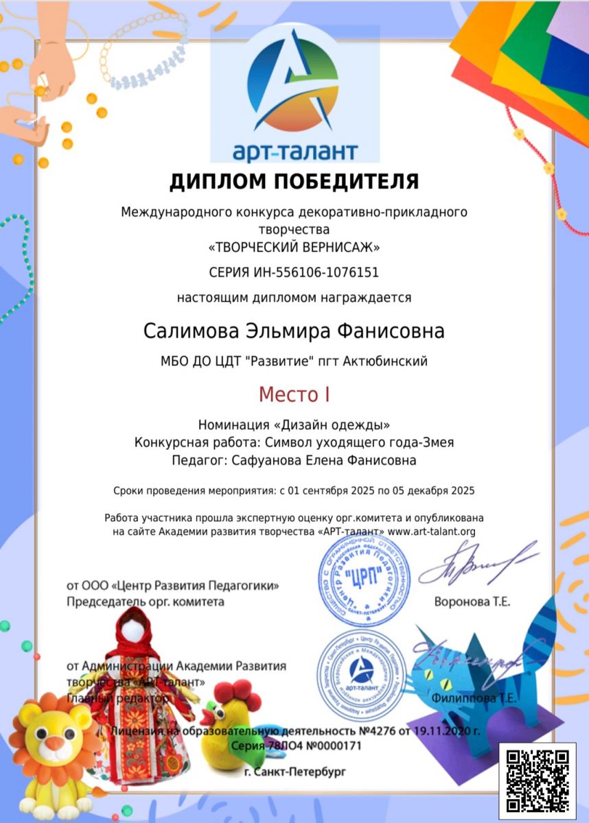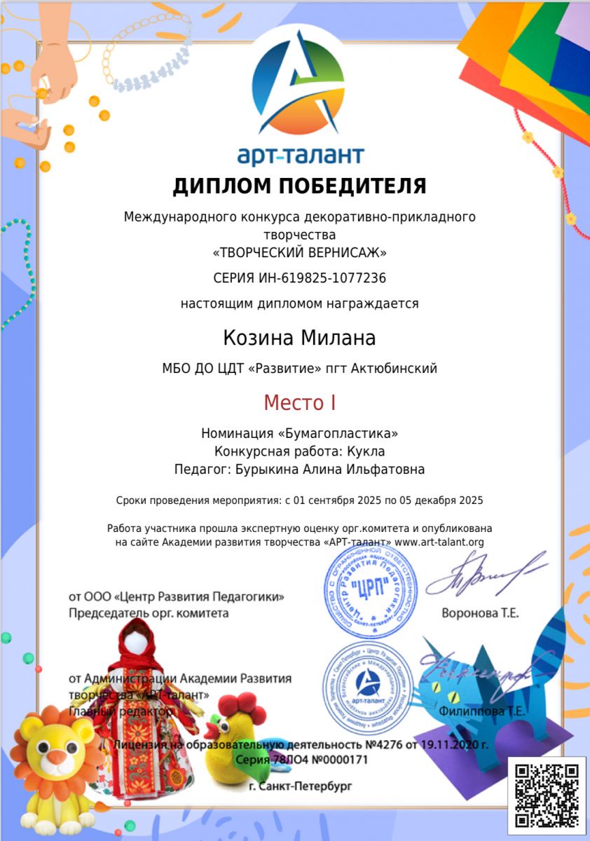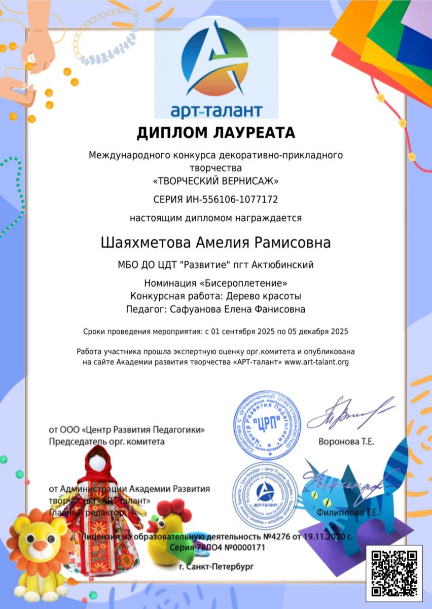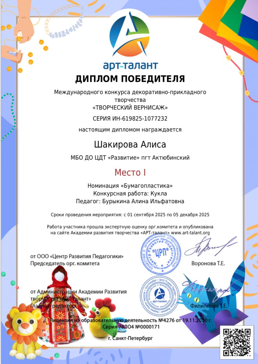 Муниципальная бюджетная организация дополнительного образования «Центр детского творчества «Развитие» п.г.т. Актюбинский Азнакаевского муниципального района Республики Татарстан