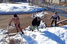 В рамках санитарно-экологического двухмесячника на территории ДООЦ прошел субботник, в ходе которого раскидали снег и убрали мусор.
