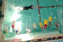 Педагог дополнительного огбразования Бахтиева А.И. провела занятие с воспитанниками 2-го года обучения по теме: "Волнообразные движения туловищем и ногами в согласовании с дыханием". Ребята обучались плаванию в скольжении волной, вдохам на каждую волну и выдохам в воду. Нам протяжении всего занятия Алсу Индусовна корректировала выполнение заданий обучающимися.