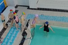 Воспитанники д/с №3 под руководством педагога дополнительного образования Гусевой А.М. обучались элементам плавания стилем кроль на груди с опорой о доску. В игре "Поймай рыбку" обучающиеся закрепляли навык задержки дыхания с погружением в воду. Приятные ассоциации, связанные с плаванием, полученные на занятиях, способствуют формированию положительного эмоционального фона у наших воспитанников.