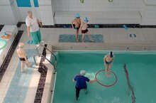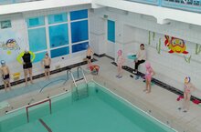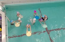 ПДО Гусева А.М. провела занятие с воспитанниками д/с №6. На занятие дети обучались движениям ног как при плавании кроль на груди с опорой о доску.