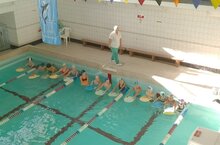 Педагог дополнительного образования Бахтиева А.И. провела занятие по программе "Капитошка" с учащимися 2-го года обучения СОШ№1. Учащиеся осваивали навык согласованности дыхания с поворотом головы при плавании кролем на груди.