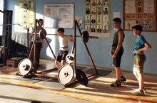Они посетили музей гиревого спорта и посоревновались в эстафете на воде.