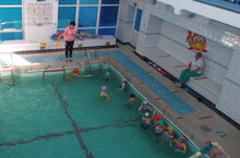 Занятия по плаванию с воспитанниками детских садов продолжаются. Сегодня ПДО Муртазина М.М. провела занятие с воспитанниками д/с №1. И как всегда разминка на суше перед заходом в воду.