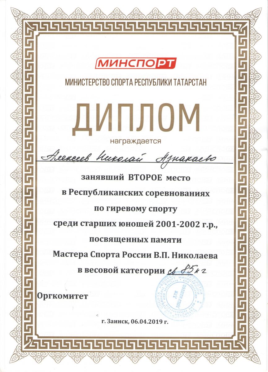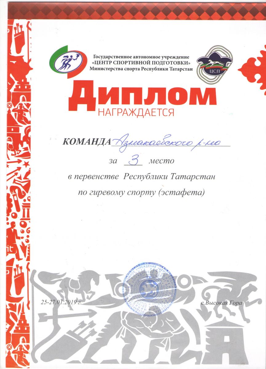 Грамота за 3 место в открытом турнире по гиревому спорту, Антипов А, 2019г.