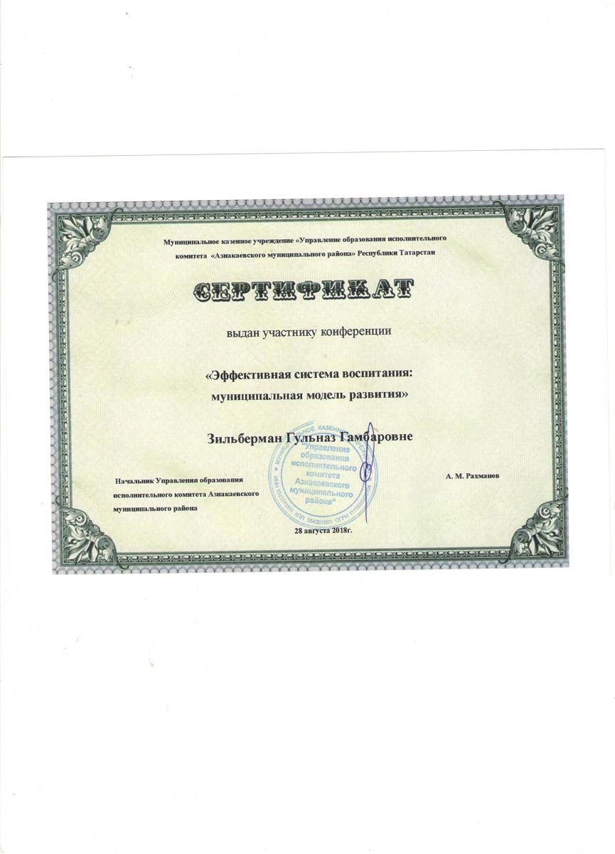 Сертификат участнику конференции "Эффективная система воспитания", 2018г., Гусева А.М.
