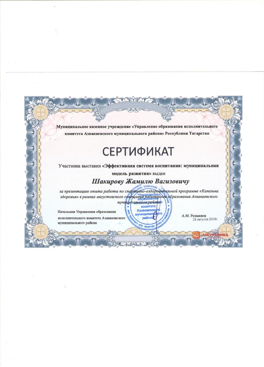 Грамота за 2 место в соревнованиях по гиревому спорту среди организаций, 2018г., Шакиров Ж.В.