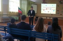 Сегодня в нашей школе прошёл Парламентский урок на тему: "Конституции Республике Татарстан 25 лет". Перед учащимися выступил Председатель Молодежного Парламента, Член общественного совета АМР -И.Д. Нагимов.