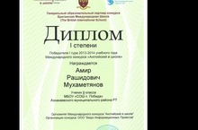 Поздравляем победителя муниципального тура Республиканской олимпиады по татарскому языку и литературы для русскоязычных детей, ученицу 8 класса Арутюнян Марину и учителя татарского языка Шайхулову Миляушу Фагиловну подготовившую победителя.