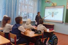 Ребята старших классов, под руководством Сафиной Г.Р. провели классные часы в 1-4 классах, где рассказали ребятам о редких растениях и животных нашего района.