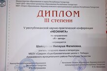 Шайхулова М.Ф. приняла участие в 5 республиканской научно- практической конференции "Неокнига". По итогам конференции награждена дипломом 3 степени по направлению "Я-автор".