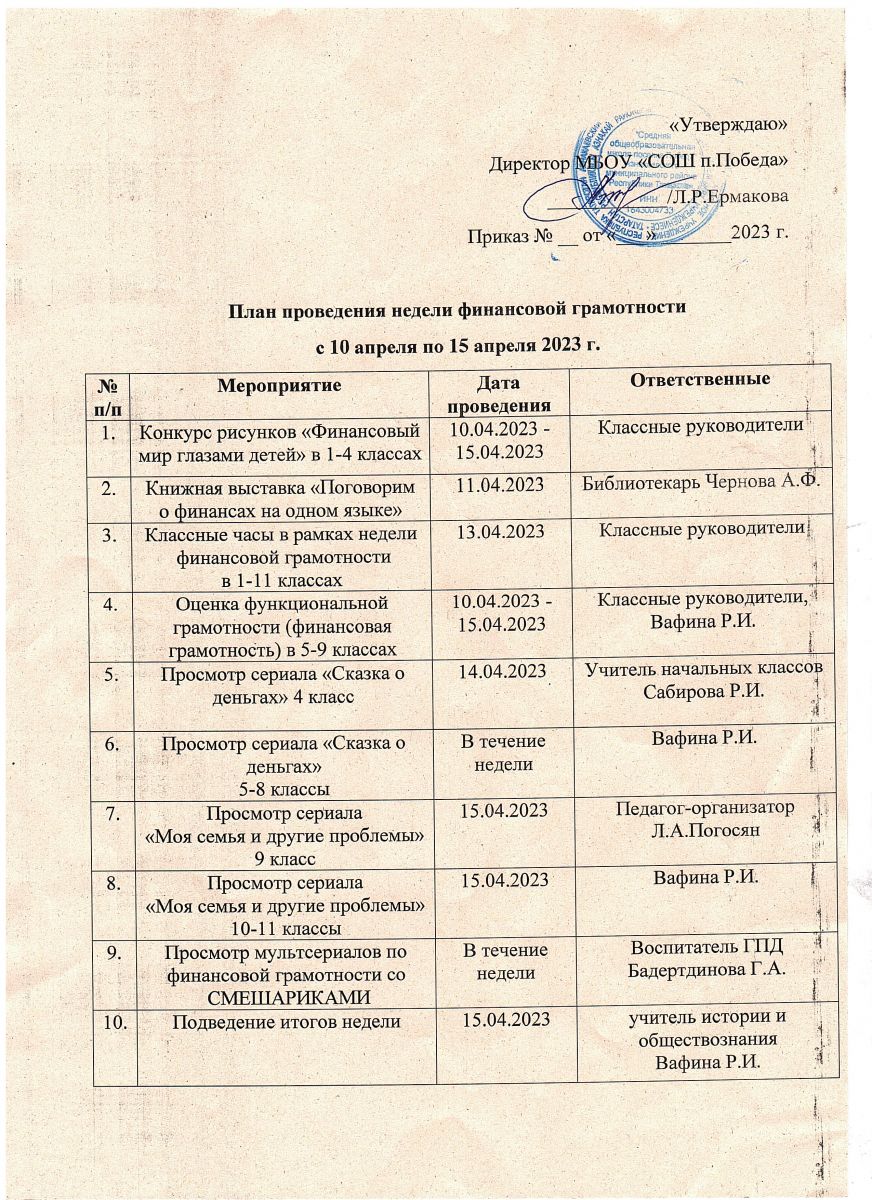 С 10 по 15 апреля в школе проходит неделя финансовой грамотности. План недели.