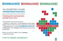 С целью популяризации математики Минобрнауки России с 30.11.2015 по 30.12.2015 запускает Всероссийскую акцию «Я люблю математику». Акция рассчитана на школьников и студентов и будет проходить на двух площадках социальных сетей: «Вконтакте» и «Instagram».