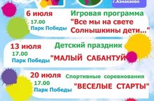 10 августа в парке Победы сотрудниками ЦДТ г Азнакаево организована досуговая площадка для детей всех возрастов. Дети играли в шашки, шахматы. Также маленькие участники играли в игру “Твистер", игра с одноразовыми стаканчиками "Попади в цель", крутили обруч и т.д. за участие в играх каждый участник получал свои сладкие призы.
