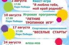 График работы досуговой площадки в Парке Победы на август. 01.08.2023