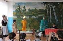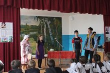 Китапханәче Гатиятова А.З.җитәкчелендә укучылар Габдулла Тукайның "Эш беткәч уйнарга ярый" шигырен сәхнәләштерделәр.