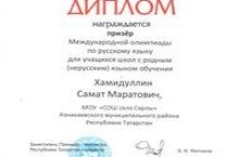 Ученик 10 класса Хамидуллин Самат Маратович стал призером Международной олимпиады по русскому языку для учащихся школ с родным ( нерусским) языком обучения.Поздравляем вас, Самат и Гульнара Сагитзяновна.Желаем всего хорошего!!!!
