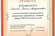 в учебных сборах с 28 мая по 1 июня 2013 года в с. Алферовка Чемодуровского сельского поселения из нашей школы участвовали юноши 10 класса (руководитель ОБЖ Салихов Ф.М.), которые показали хорошую подготовленность.