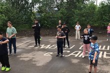 Каждое утро начинается с утренней линейки и зарядки. Сегодня праздник "Открытие пришкольного лагеря".