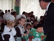 У нас учат: 16 педагогов/ 16 педагог, балалар бакчасында 4 тәрбияче, 4 воспитателя