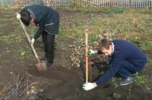 Сегодня в нашей школе были посажены саженцы. Целью данного мероприятия является создание благоприятного микроклимата на территории школы, так как озеленение территории школы является одной из обязательных составляющих благоустройства любого пришкольного участка.