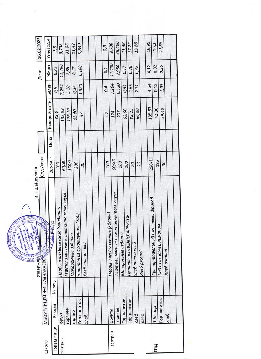 - Меню на 16 ноября