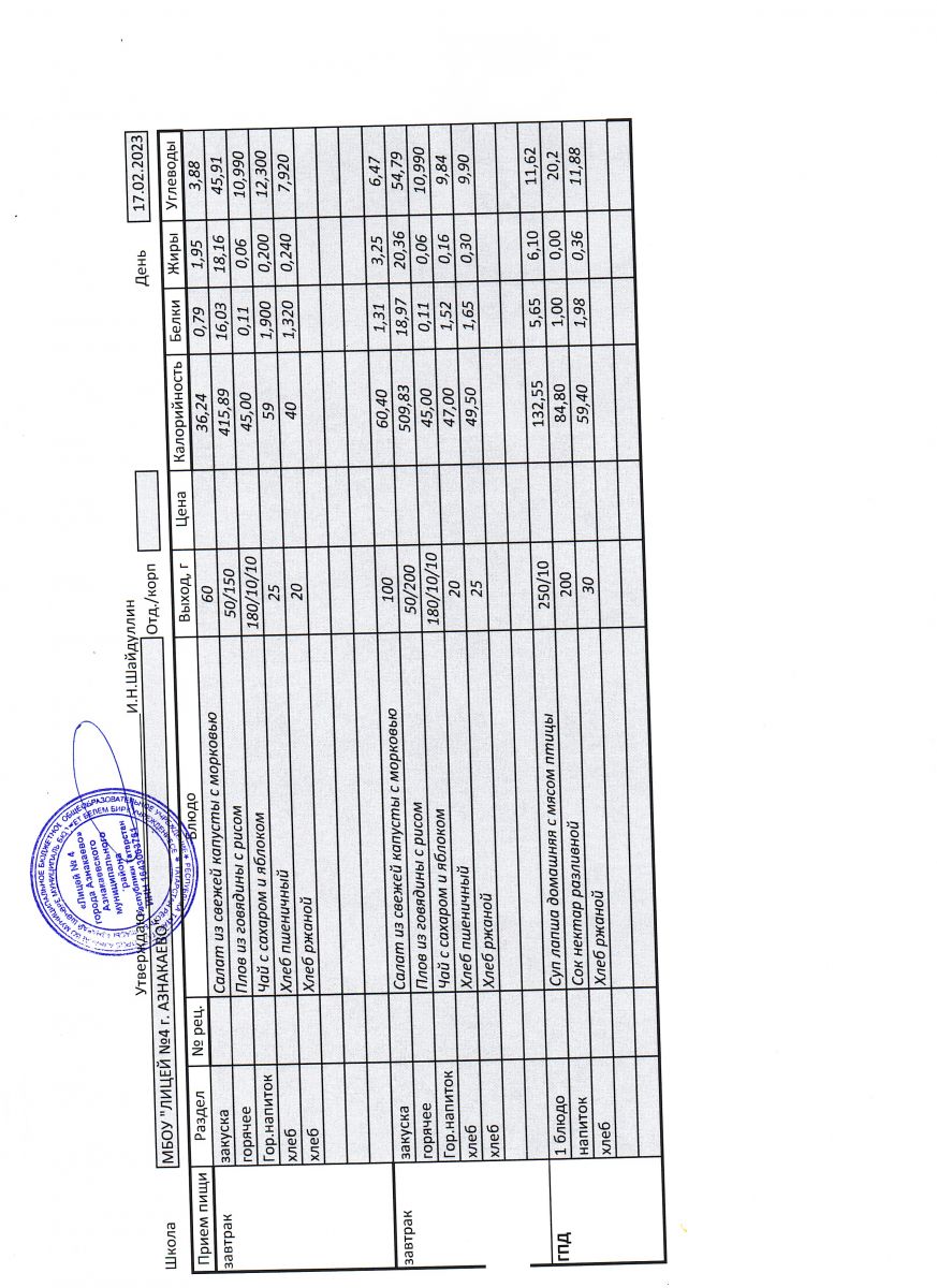 - Меню на 17 ноября