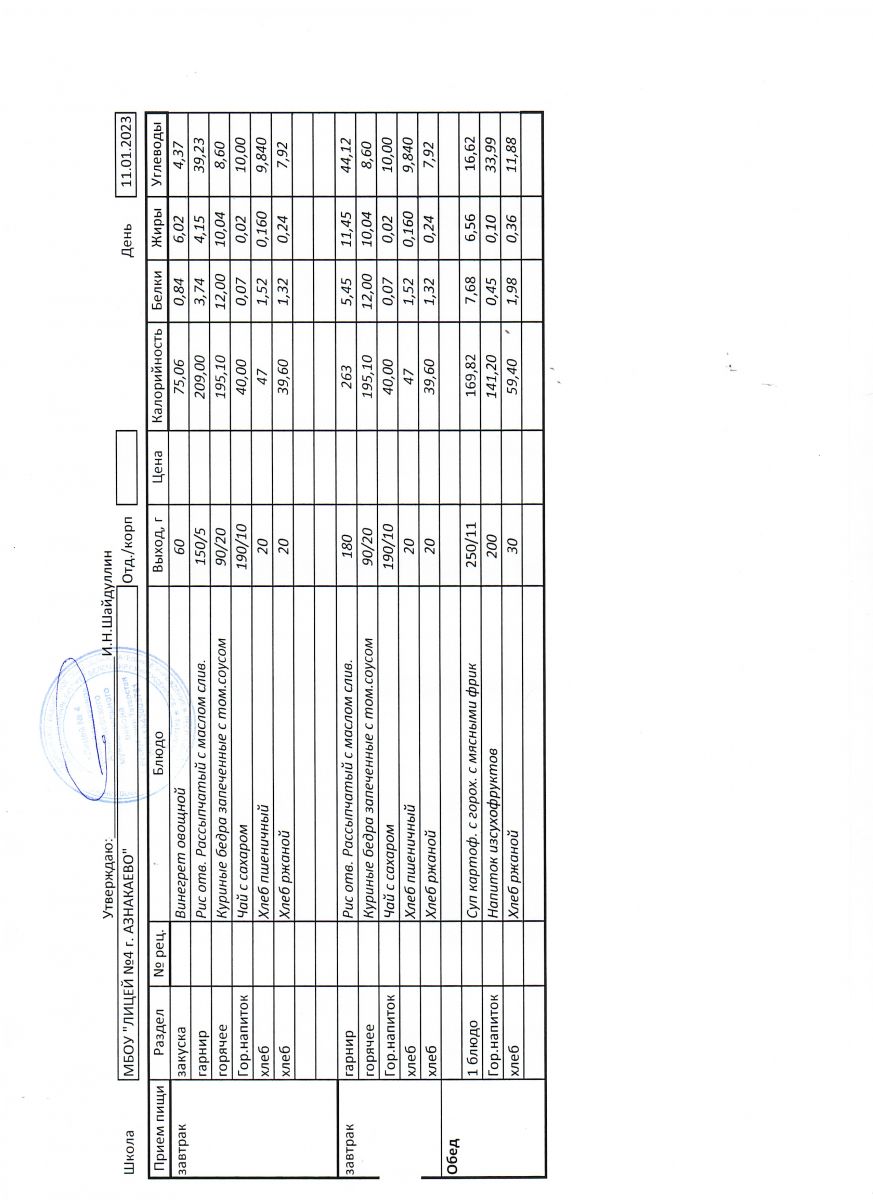 - Меню на 11 ноября
