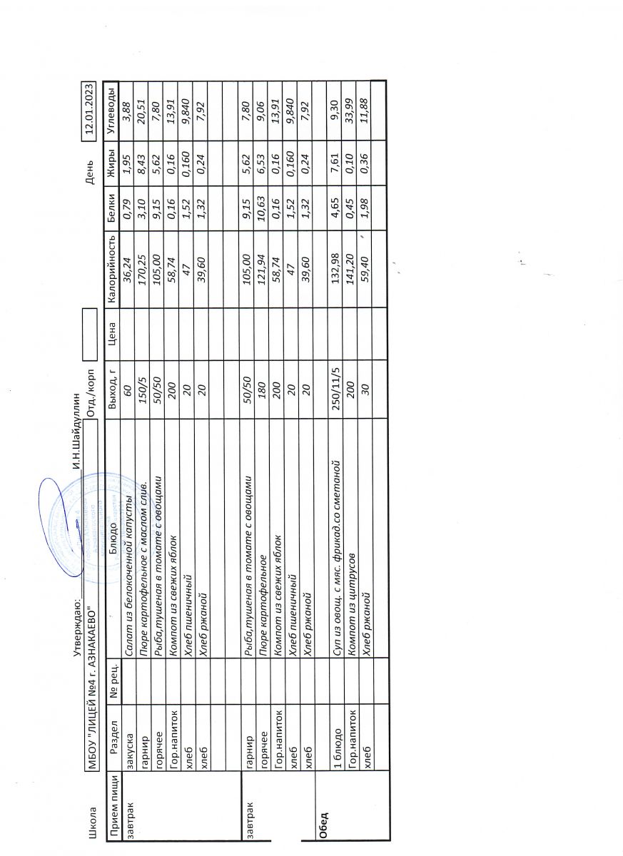 - Меню на 12 сентября